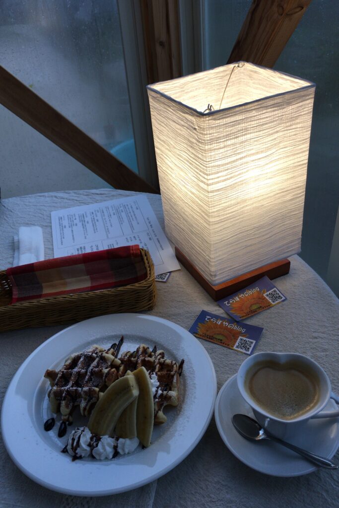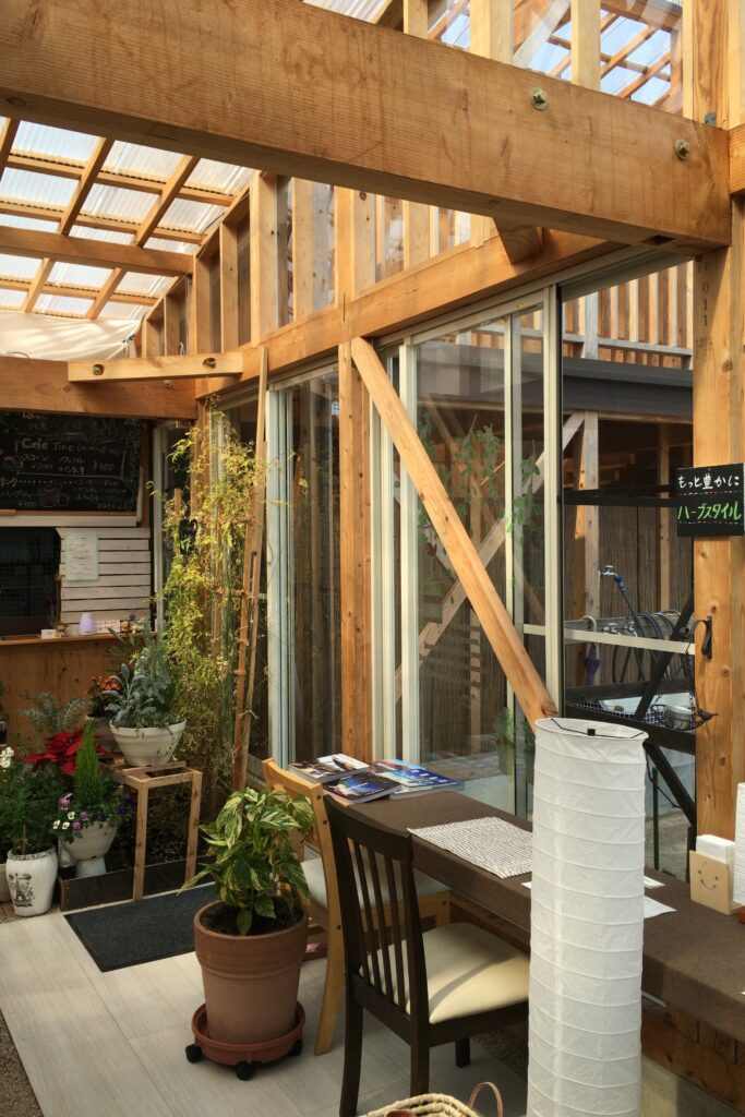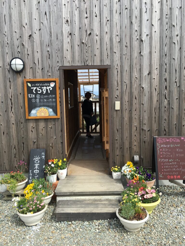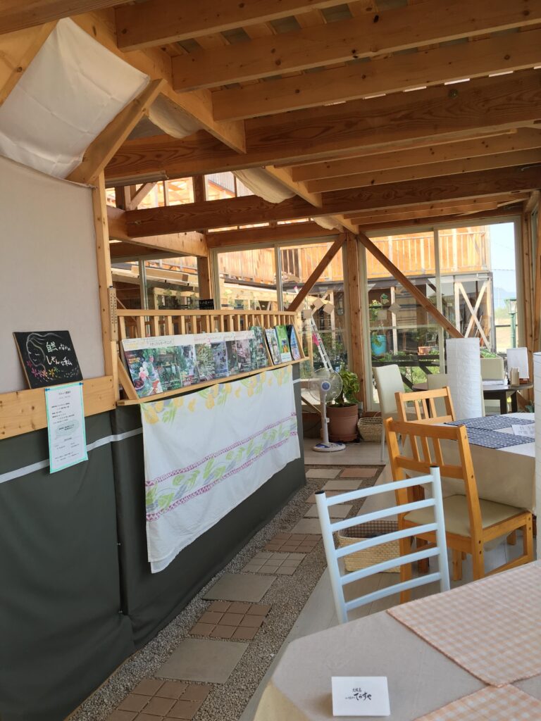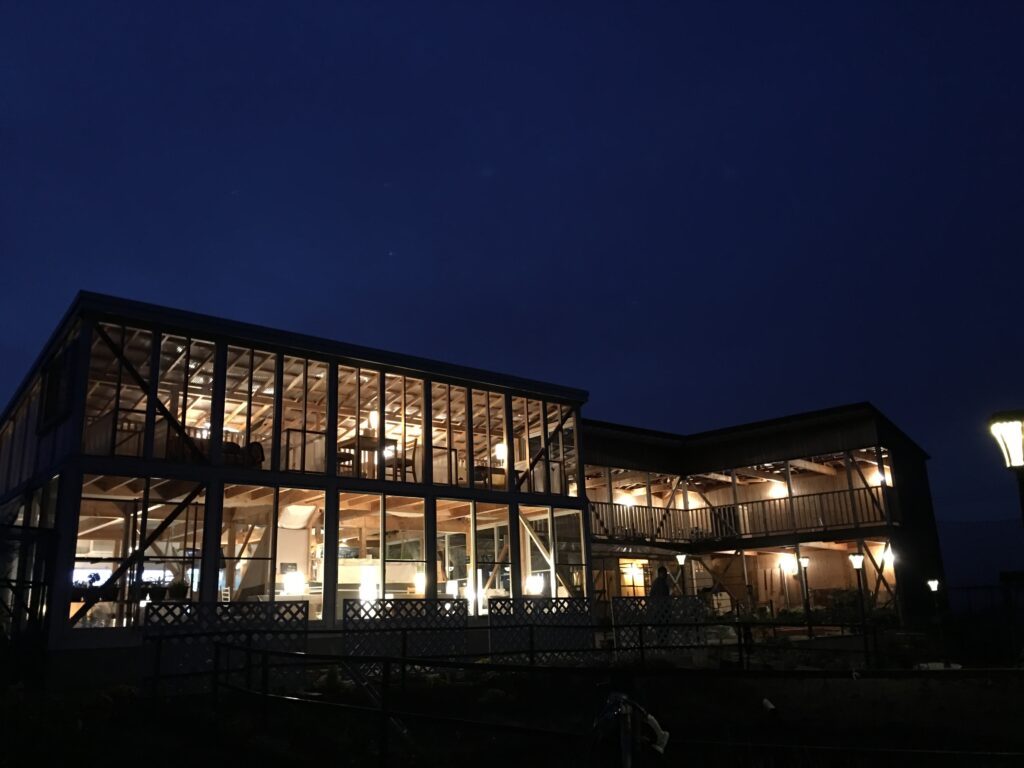 若い女子スタッフ達と一緒にカフェメニュー作り、DIY(店舗大工仕事)、園芸(土いじり)で作り上げてきたものです。夜になると小高い所に煌煌と明るい建物が浮かび上がり、「なんだろう?」とお立ち寄りいただくお客様もいらっしゃいました。それなりに目立っていたようです。