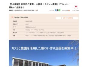 大根島てらすやの説明会を2月20日(金)大根島てらすやにて実施します。